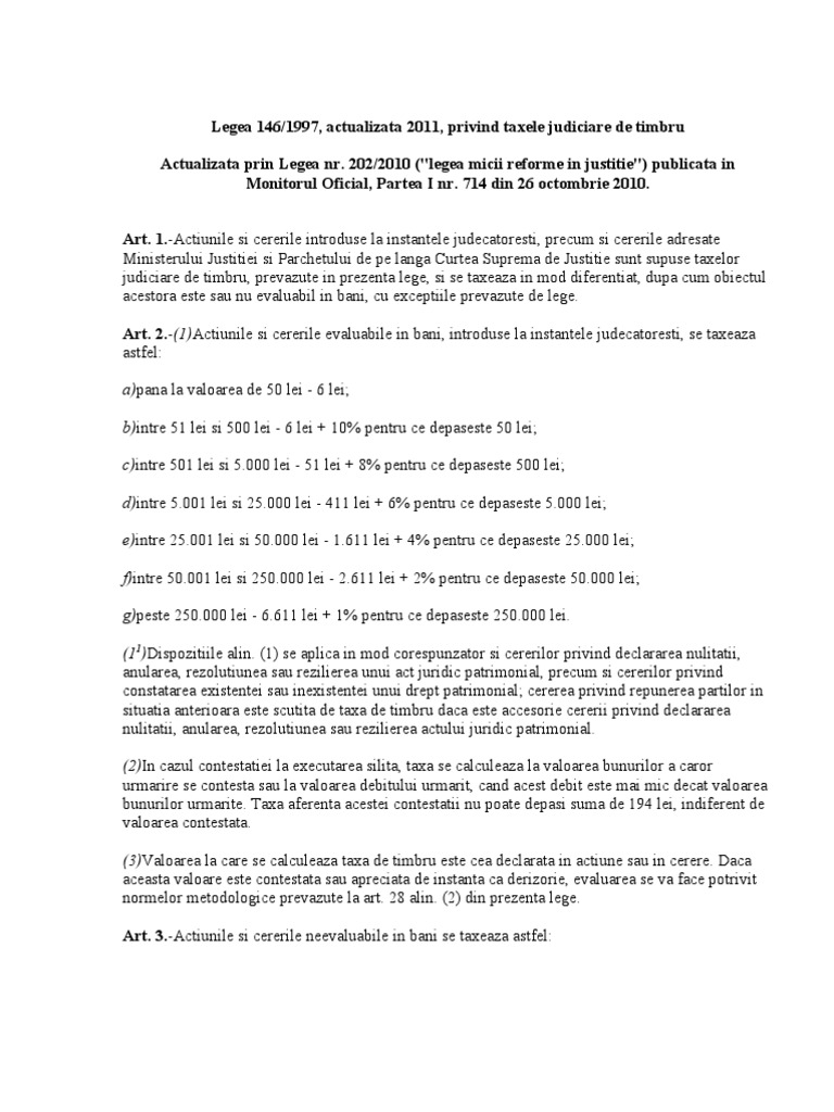 F) cereri de reexaminare impotriva incheierii de anulare a cererii de chemare in judecata, formulate potrivit art. Potrivit ordonantei de urgenta adoptata de guvern toti posesorii de masini din romania care nu au achitat cei care au recuperat taxa auto in instanta vor fi nevoiti sa plateasca noua taxa in momentul vanzarii masinii. Contrar susținerilor petentului, taxa de timbru se calculează nu în temeiul art.